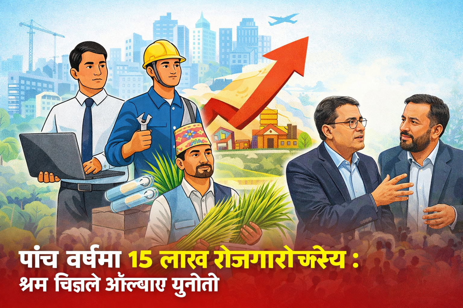 काठमाडौं — सरकारले प्रमुख राजनीतिक दलका घोषणापत्र, वाचापत्र र प्रतिबद्धताका आधारमा ‘राष्ट्रिय प्रतिबद्धता’ मस्यौदा सार्वजनिक गर्दै रोजगारीलाई आर्थिक रूपान्तरणको केन्द्रमा राखेको छ। मस्यौदामा पाँच वर्षभित्र १५ लाख रोजगारी सिर्जना गर्ने महत्वाकांक्षी लक्ष्य राखिएको छ। सरकारले डिजिटल अर्थतन्त्र, स्वरोजगार प्रवर्द्धन, वैदेशिक रोजगारी व्यवस्थापन, सिप विकास तथा निजी क्षेत्रसँग सहकार्यलाई रोजगारी सिर्जनाका मुख्य आधारका रूपमा अघि सारेको